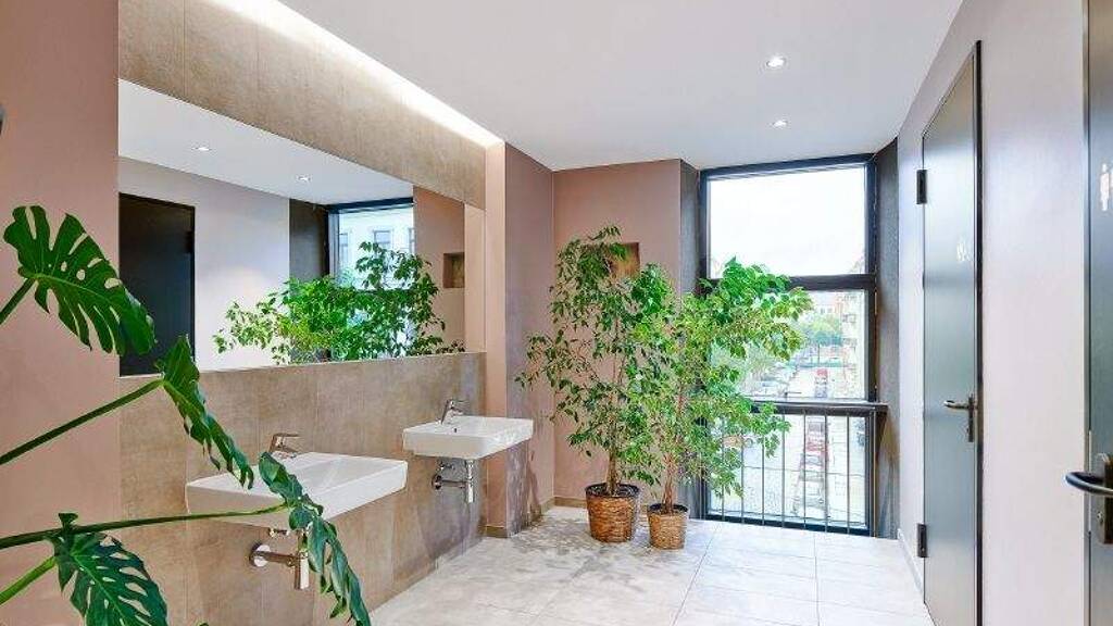 Eine separate Teeküche mit hochwertiger Küchenmöblierung eröffnet Platz für Pausen oder kleine Meetings. Die getrennten Sanitärbereiche verfügen über eine zentrale Dusche und werden durch ein barrierefreies WC ergänzt.