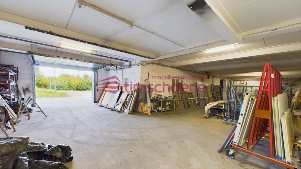 - **Lage:** Hanglage, wodurch das Untergeschoss über Tageslicht verfügt - **Fläche:** Geräumige Hallenflächen im Erdgeschoss - **Büro- und Sozialräume:** Im Erdgeschoss befinden sich zusätzlich zwei Büroräume, eine Küche sowie eine Toilettenanlage mit Umkleidekabine - **Zustand:** Die Immobilie ist gepflegt und in einem guten Zustand - **Heizung:** Zentralheizung (Gas) - **Freifläche:** Ausreichend Freifläche für verschiedene Anwendungen - **Parkmöglichkeiten:** Außenstellplätze sind vorhanden