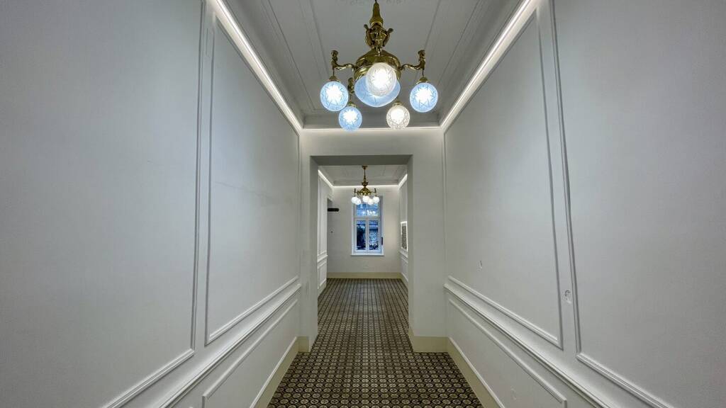Auch das Wohnhaus selbst präsentiert sich in einem gepflegten und kürzlich modernisierten Zustand. Der Eingangsbereich wurde stilvoll erneuert, um ein digitales schwarzes Brett ergänzt und gleichzeitig wurde großer Wert darauf gelegt, den authentischen Altbau-Charme zu bewahren. So blieben die Original Mosaikfliesen erhalten sowie auch die kunstvoll gearbeiteten Stiegenhausgeländer. Die historischen Bassenas auf den Etagen sind ein weiteres charmantes Detail vergangener Zeiten.