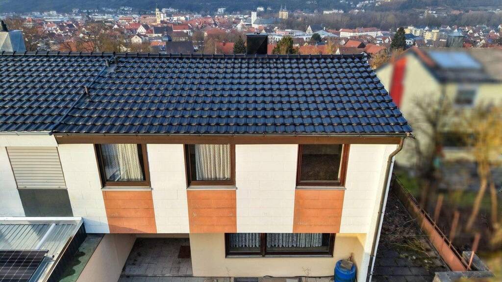 Die Doppelhaushälfte befindet sich in Stadtrandlage mit toller Aussicht auf einem Grundstück mit 263 m². Die Immobilie wurde in den vergangenen Jahren teilweise modernisiert und befindet sich in guten Gesamtzustand. Die Wohnfläche beträgt ca. 127 m² auf drei Ebenen. Im Erdgeschoss befinden sich zwei Zimmer, eines mit Dusche, WC, ein Keller-/Abstellraum und ein Heizraum. Im Obergeschoss liegt der Wohn- und Essbereich mit Einbauküche, Gäste WC, Zugang zum Gartenbereich mit Terrasse. Im ausgebauten Dachgeschoss gibt es drei weitere Zimmer, ein Tageslichtbad mit Badewanne und einen Speicher.