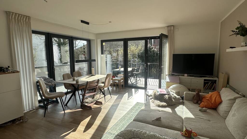 Der an den Wohn-/Essbereich angrenzende Balkon ist ein besonderes Highlight der Wohnung. Er erstreckt sich über eine Ecke, sodass zwei Seiten geöffnet sind. Dadurch profitieren Sie von Sonne zu unterschiedlichen Tageszeiten sowie einer angenehm luftigen Atmosphäre. Der Balkon bietet ausreichend Platz für gemütliche Sitzmöbel.