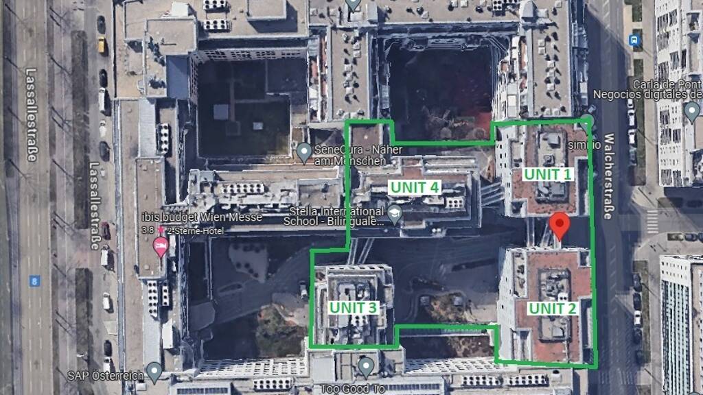 GREENWORX, Österreichs erstes LEED Platin zertifiziertes Bürohaus spielt eine Vorreiterrolle im Stadtentwicklungsgebiet Prater/Wiener Messe und wird seinem Namen voll und ganz gerecht. Das Objekt umfasst eine Gesamtfläche von rund 19.000 m², welche sich auf 4 Solitärgebäude (Unit 1-4) in einer Größenordnung zwischen 2.750 m² und 5.500 m² sowie einen generalsanierten Bestandstrakt (Unit 5) untergliedert.