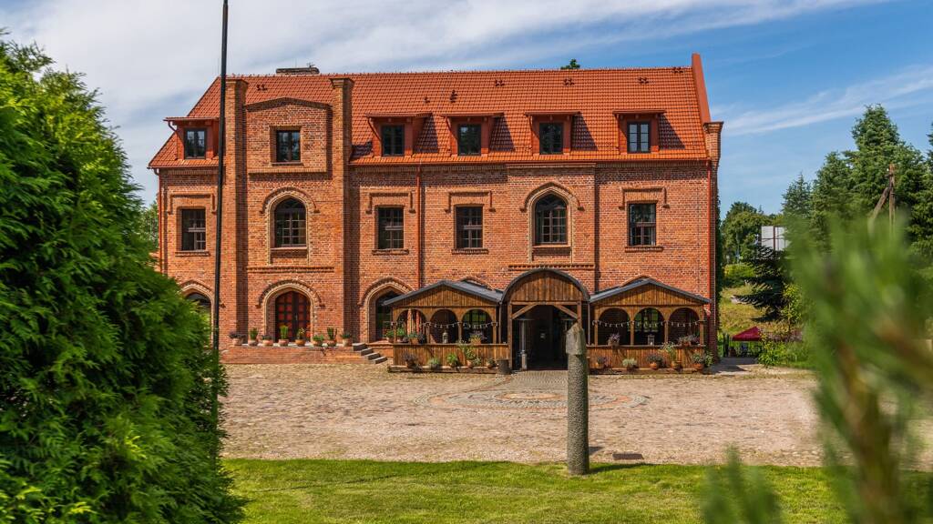 Auf einem weitläufigen Grundstück von etwa 10 Hektar, umgeben von den ruhigen Gewässern des Flusses Lupawa, steht ein Gebäude, das sowohl als stiller Zeuge vergangener Jahrhunderte als auch als visionäres Potenzial für die Zukunft dient.