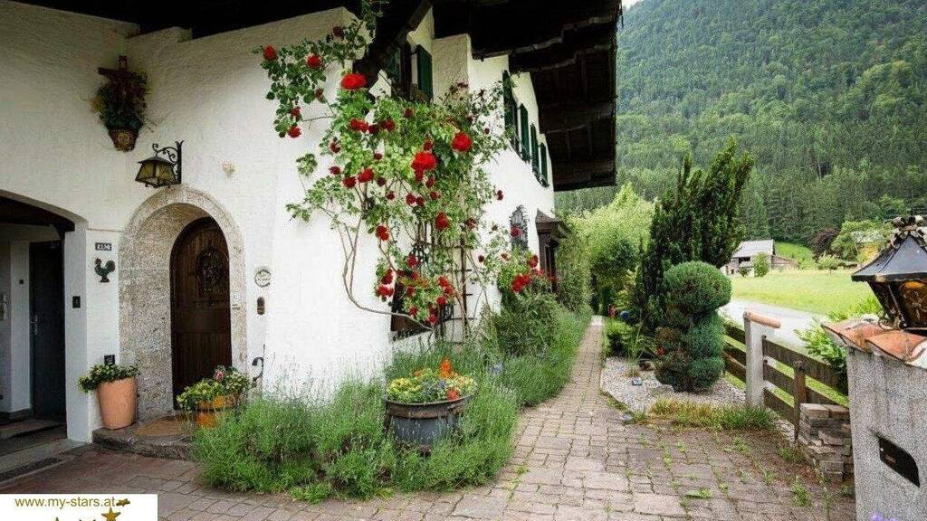 Das Einfamilienhaus ist im Stil eines Tiroler Landhauses erbaut worden und hat 1 Nebengebäude aus Holz.