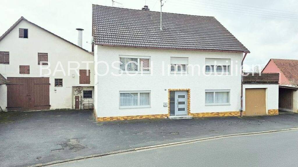 Das Anwesen selbst umfasst neben dem Wohnhaus mehrere Nebengebäude, die unter anderem als Garagen oder Werkstätten genutzt werden können. Die Einfahrten und Hofflächen sind geteert und ermöglichen eine komfortable Zufahrt. Hinter der Scheune befindet sich ein Hühnerstall mit Auslauf, zudem gehören Garten- und Wiesenflächen zum Grundstück.