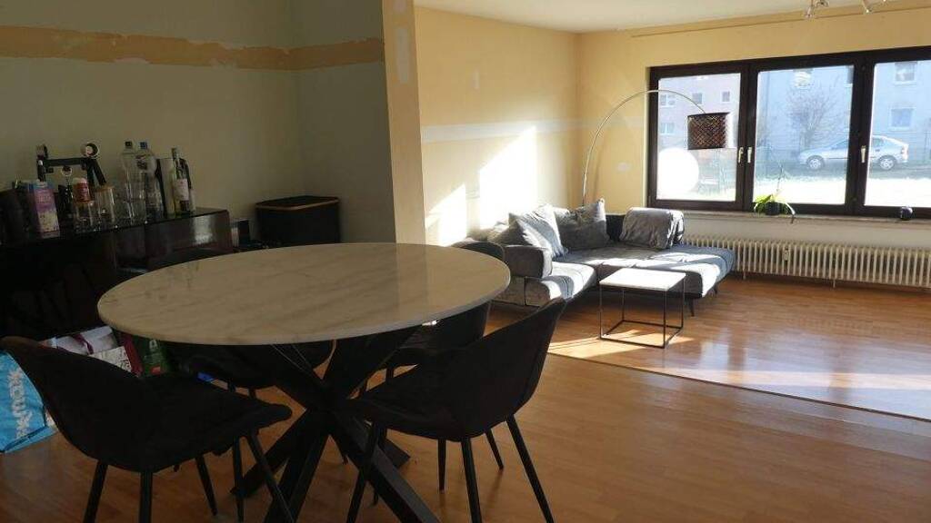 Diese besondere Wohnung in einem kleinen Mehrfamilienhaus mit nur vier Wohneinheiten vermittelt das Gefühl, wie im eigenen Häuschen zu wohnen. Beim Betreten empfängt Sie eine Diele, die direkt in den offenen Wohn- und Essbereich führt. Der moderne Grundriss schafft ein großzügiges Wohngefühl und bietet viel Raum für individuelle Gestaltungsmöglichkeiten. Vom Wohnzimmer aus gelangen Sie auf die gemütliche Terrasse mit direktem Zugang in den gemeinschaftlich genutzten Garten - ideal, um den Alltag im Grünen ausklingen zu lassen. Die Küche ist separat angelegt, kann jedoch durch das Entfernen der Wand in eine offene Wohnküche verwandelt werden, die perfekt in den Wohnbereich integriert ist. Über eine Treppe erreichen Sie die obere Etage, die zwei gut geschnittene Schlafzimmer sowie ein Badezimmer mit Dusche und Wanne bereithält. Ein Kellerabteil sorgt für zusätzlichen Stauraum, während ein eigener Außenstellplatz (á € 10.000,--) das Angebot komfortabel abrundet. Dank der gelungenen Architektur und des durchdachten Grundrisses entsteht hier eine Wohnatmosphäre, die an ein eigenes kleines Haus erinnert - kombiniert mit den Vorzügen einer Wohnungsgemeinschaft.