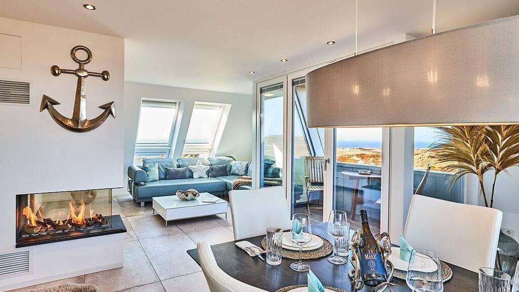 Luxuriös, modern, lichtdurchflutet und geprägt von zeitloser Eleganz - so lässt sich die stilvolle Einrichtung wohl am besten beschreiben. Ihr offener Wohn-/Essbereich punktet mit gemütlichen Schrägen, atemberaubende Blickachsen und einen Kamin, welcher Ihnen nicht nur in der dunklen Jahreszeit ein Gefühl von Wärme und Behaglichkeit beschert, während draußen die raue Nordsee tobt. Ihre angrenzende Loggia gewährt einen malerischen Blick über die Dünen- und Heidelandschaft bis aufs Meer. Weiter finden Sie auf derselben Ebene des Wohnbereichs ein Hauptschlafzimmer mit en Suite Duschbad, ein weiteres Schlafzimmer und separates Duschbad.