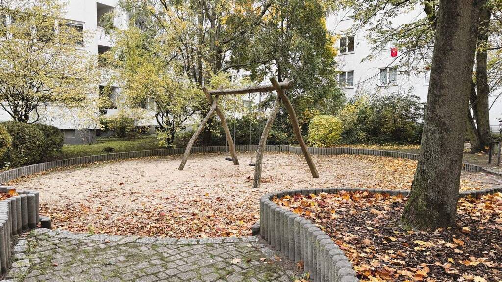 Den Bewohnern steht die gepflegte und begrünte Wohnanlage mit Spielplätzen zur Verfügung.