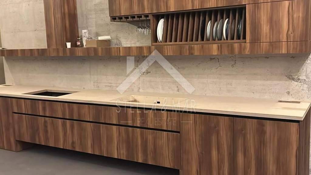 Die neue, maßgefertigte Küche umfasst Arbeitsplatte, Spüle und Küchentisch aus flüssiger Keramik BASECRETE XTREME (vom selben Hersteller wie der Pool, beständig gegen mechanische Beschädigungen und Feuchtigkeitseintritt!). Neue, unbenutzte Haushaltsgeräte (Kühlschränke: einer für Getränke, einer für Wein; Einbaubackofen und Kochfeld). Sanitärausstattung mit Einbauspülkästen (schwarze Hansgrohe-Duscharmaturen und schwarze Voxort Perla-Armaturen). Die Kopfteile und Kleiderschränke sind handgefertigt und bestehen aus hochwertigen, alten Materialien (über 100 Jahre alte Dielen). Neue, unbenutzte Lattenroste von Mistral Zadar. Hydromassage-Pool für 4 Personen (Flame) und maßgefertigte Sauna für 8 Personen (derzeit im Bau). Heizung und Kühlung erfolgen über moderne Außengeräte (AZURI 7 kW TRIAL) und Innengeräte (je 3,5 kW, Raum für Raum separat regelbar). Zusätzlich ist ein Kamin vorhanden; im Wohnzimmer und einem weiteren Zimmer ist die Vorbereitung für eine Fußbodenheizung installiert.