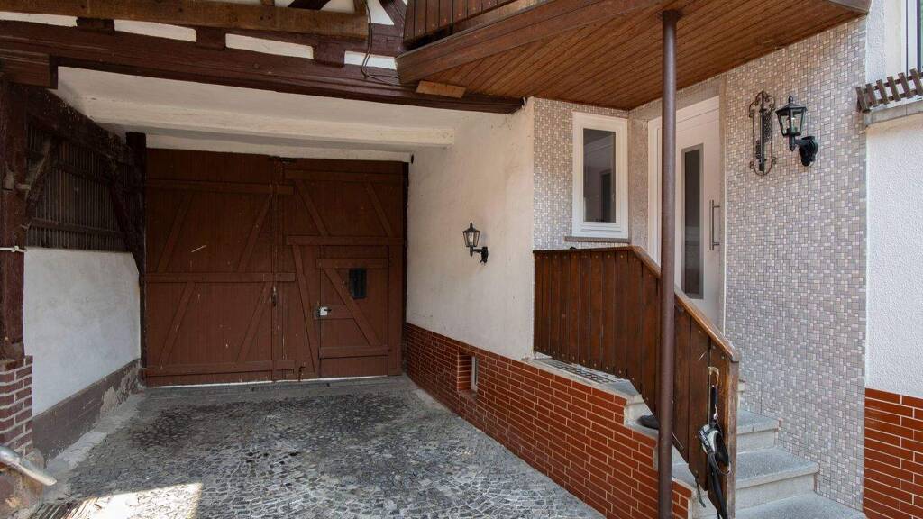 Auf dem 366 m² großen Grundstück befinden sich weitere Gebäude: Scheune, Stallungen sowie ein großer Hof mit schönem Basaltpflaster und ein kleiner Garten.