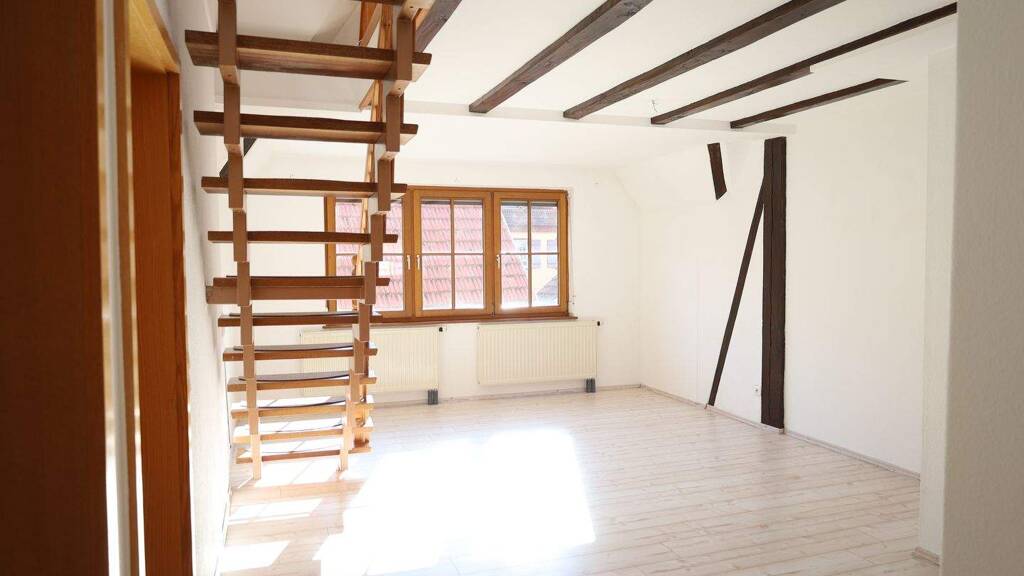 Über eine stilvolle Holztreppe gelangen Sie vom Wohnbereich ins zweite Dachgeschoss. Dort erwarten Sie zwei weitere Zimmer - eines davon ist ein Durchgangszimmer, das flexibel genutzt werden kann, beispielsweise als Ankleidezimmer, Gästezimmer oder Büro. Auch hier erwartet Sie ein weiteres Badezimmer mit Badewanne und großem Dachfenster das für Tageslicht sorgt.