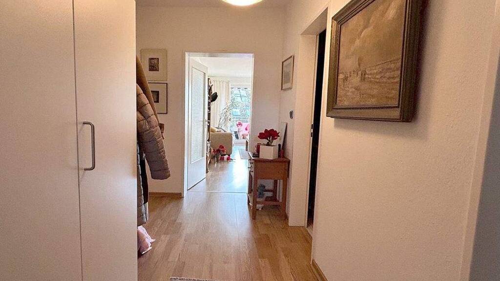 Ein praktischer Abstellbereich im Flur sorgt für zusätzlichen Stauraum innerhalb der Wohnung. Ergänzend steht ein eigener Kellerraum zur Verfügung. Des Weiteren befinden sich im Kellergeschoss ein gemeinschaftlicher Waschraum, ein Trockenraum sowie ein Fahrradraum.