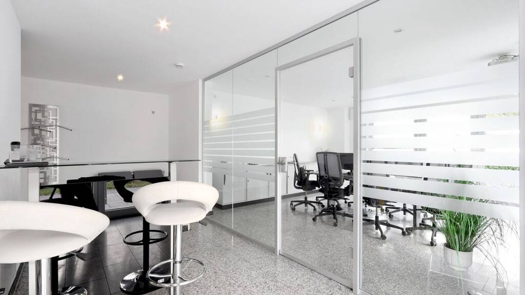 + Exponierte Schaufensterlage + Energieeffizienzklasse A+ (Grundwasserwärmepumpe) + Fußbodenheizung auf allen Etagen + 3-fach verglaste Kunststofffenster mit Sonnenschutzrollläden + Granitböden in allen Büroflächen + Zahlreiche Deckenspots & moderne Lichtleisten + Loxone Smart-Home-System (Steuerung von Licht, Rollläden, Musik, Heizung, Sicherheit) + EDV-Verkabelung mit Bodentanks + Schwellenfreier Zugang über eigenen Plattformaufzug + Optimal ausgestattete Teeküche im Untergeschoss + Zwei separate WCs + exklusives Privatbad mit bodengleicher Dusche und Bidet + Eigener Serverraum mit Klimatisierung + Großer separater Lagerraum + Balkon mit großer Markise + Überdachte Terrasse mit Steingarten & Kirschlorbeer-Hecke + Vollständige Büroausstattung inklusive hochwertigem Mobiliar im Chefbüro
