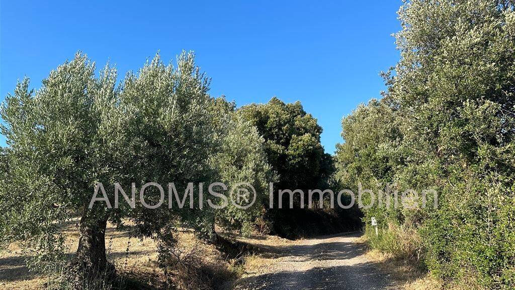 Grundstück 1 Hektar auf Hügel mit Ausblick Gartenhaus und 120 Olivenbäumen, 2 Einfahrten