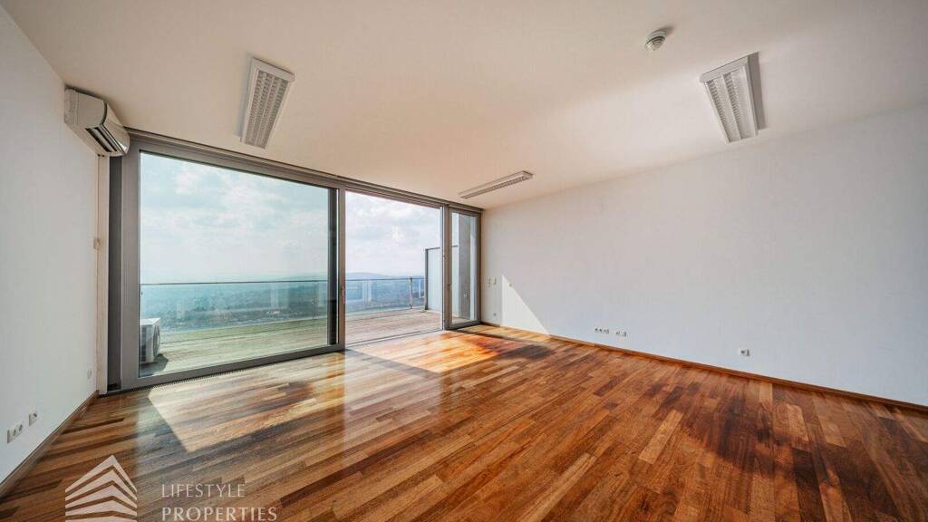 Die helle Wohnung befindet sich in einem im Jahr 2006 errichteten, modernen Wohngebäude im 1. Obergeschoss und ist bequem über einen Personenaufzug erreichbar. Die Wohnfläche von ca. 52 m² erstreckt sich über einen Vorraum, einen großzügigen Wohnraum, ein Badezimmer, ein separates WC sowie einen Abstellraum. Die Haupträume der Wohnung sind mit hochwertigem Parkett ausgekleidet, in den Nassräumen sind moderne Fliesen aus Naturstein verlegt. Das Highlight der Immobilie ist die großflächige Terrasse, welche einen wunderschönen Blick auf Wien garantiert.