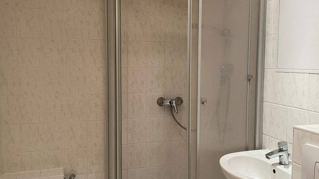 Die Wohnung verfügt über ein helles Wohnzimmer mit Zugang zur Loggia, von der aus sich ein Blick ins Grüne sowie auf die gegenüberliegenden Einfamilienhäuser bietet. Das Badezimmer ist gefliest und mit einer Dusche ausgestattet. Zusätzlich gehören zwei weitere Zimmer sowie eine Küche zur Wohnung.