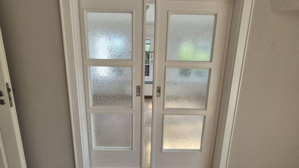 Das Esszimmer ist zum Wohnzimmer hin durch eine sehr schöne Schiebetür mit Glaseinsatz verbunden.