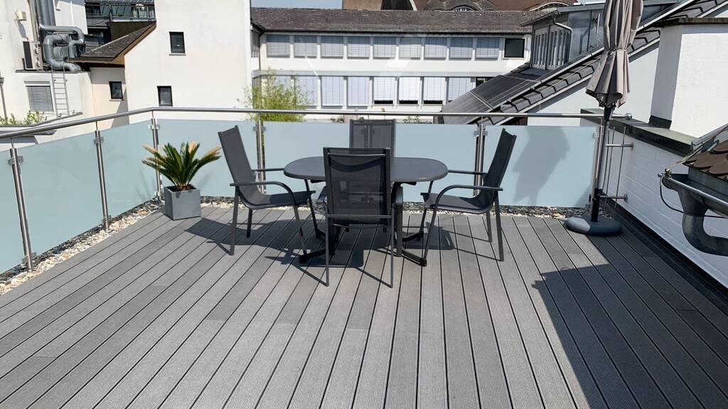Auf der neugestalteten großenDachterrasse mit Fernsicht lässt es sich wunderbar vom Alltagsstress erholen.