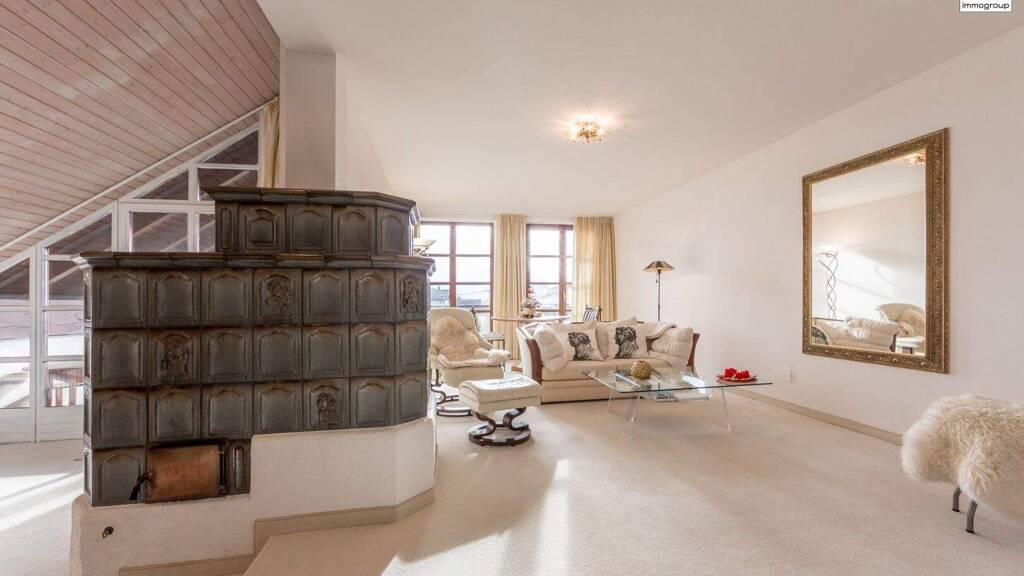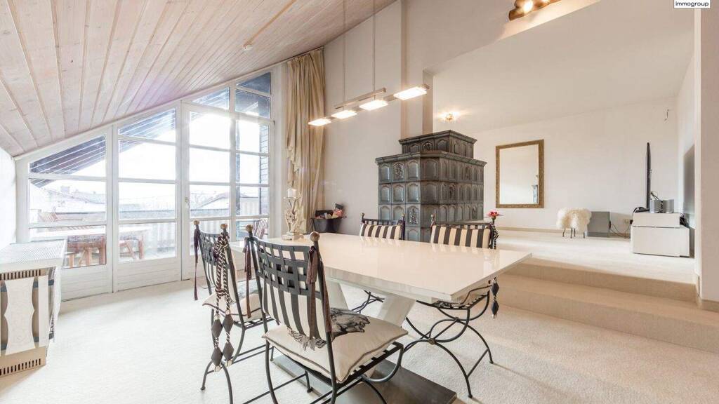 Der beeindruckende, helle Wohn- Essbereich mit mehr als 70 m² ist ein Raum mit Charakter, Lichtfülle und Gemütlichkeit, welche vom Kamin zusätzlich unterstrichen wird. Besonders hervorzuheben sind die insgesamt drei Außenbereiche, 2 Balkone und 1 Süd-Terrasse mit rund 22 m².