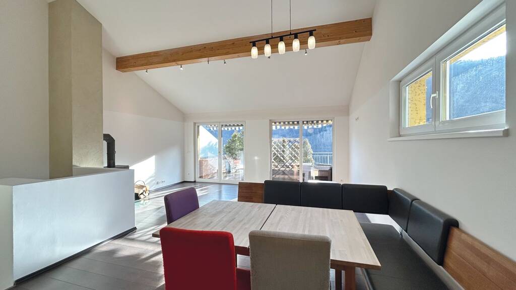 Dieses kleine, charmante Einfamilienhaus erstreckt sich über drei gemütlich gestaltete Ebenen und verbindet komfortables Wohnen mit einem Hauch von alpinem Lebensgefühl. Bereits im Eingangsbereich öffnet sich eine helle, moderne Küche, die nahtlos in den Wohn- und Essbereich übergeht. Große Fensterfronten lassen viel Tageslicht herein und führen auf die großzügige Terrasse, von der aus sich ein atemberaubender Blick auf die umliegende Bergwelt bietet - ein idealer Ort, um zu entspannen oder Gäste zu empfangen.