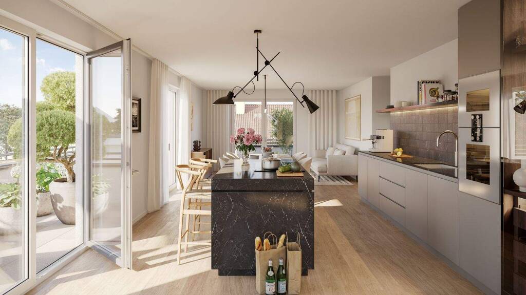 Besondere Highlights sind drei Dachterrassen, die das Wohnen auf angenehmste Weise erweitern. Die großzügigste, ca. 17 m² große, nach Süden ausgerichtete Hauptterrasse lässt sich mit einer Essgruppe und Loungemöbeln als herrliches Outdoor-Refugium gestalten; eine Ost- und eine Westterrasse laden zum Morgenkaffee und zum Sundowner ein. Alle Zimmer besitzen Zugang zu einer der drei Terrassen.