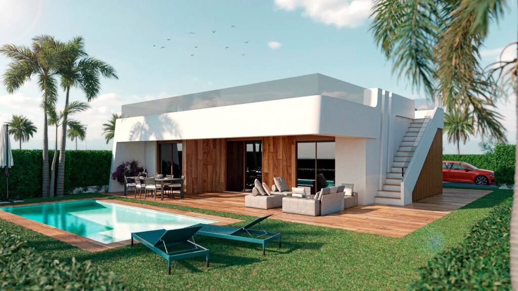 Diese wunderschönen Villen wurden nach den höchsten Qualitätsstandards gebaut und in einem zeitgenössischen Stil mit offenem Grundrisskonzept entworfen. Die Innenaufteilung besteht aus einem geräumigen Wohn- und Essbereich mit voll ausgestatteter Küche, einem Hauptschlafzimmer mit eigenem Bad und Ankleidebereich, zwei weiteren Doppelschlafzimmern und einem Gästebad. Das dritte Schlafzimmer kann leicht geöffnet werden, um zusätzlichen Wohnraum zu schaffen, so dass die Immobilie vielseitig genutzt werden kann, um Ihren Wünschen zu entsprechen.