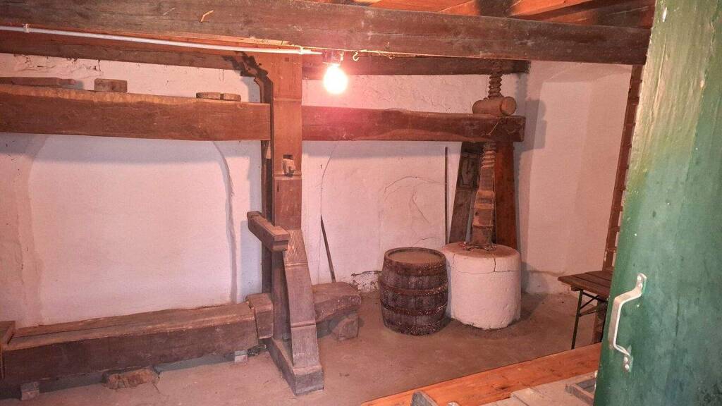 Im Presshaus (ca. 50m²) befinden sich eine große, dekorative Holz-Weinpresse und eine Holzdecke mit urigen Holztram. Bestens geeignet als Stüberl zum Zusammensitzen in gemütlicher Runde und Verkosten diverser guter Tröpfchen, als Partyraum, oder dergleichen!