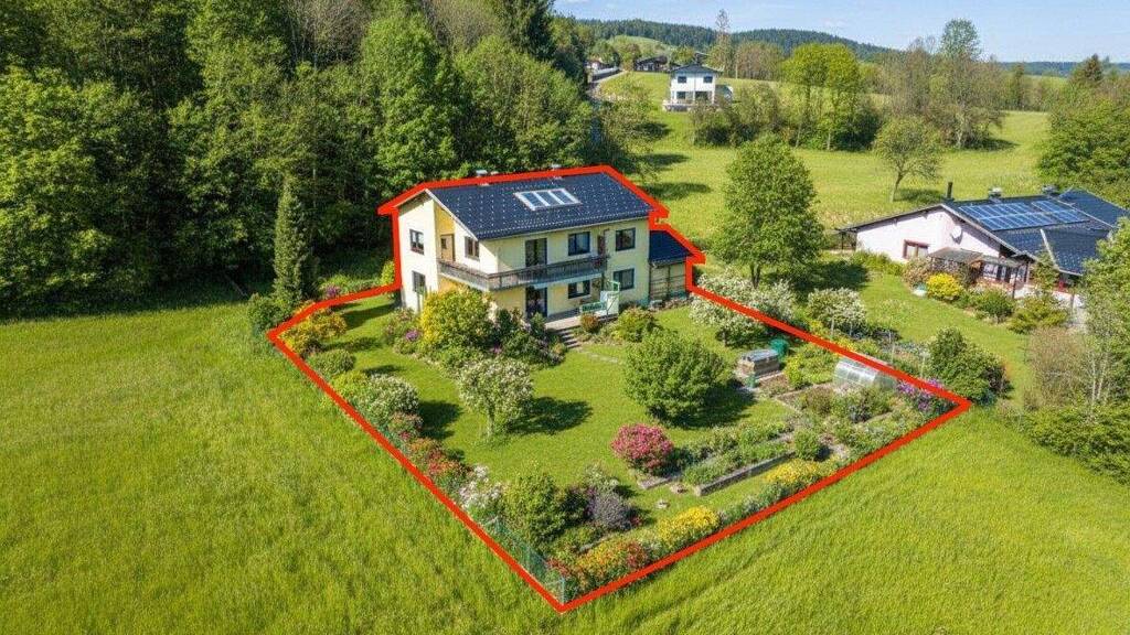 Unter Zugrundelegung deiner korrigierten Flächenangaben stehen hier insgesamt ca. 341,1 m² Nutzfläche zur Verfügung, wovon ca. 230,6 m² als Wohnfläche gelten. Das Haus überzeugt durch eine durchdachte Aufteilung auf Keller-/Untergeschoss, Erdgeschoss und Obergeschoss und bietet damit viel Raum für Familie, Arbeiten, Gäste, Hobby und Lagerung. Im Exposé sind insgesamt 7 Zimmer, 2 Bäder, 2 WCs, 1 Garage, 1 Balkon und 6 Abstellräumeausgewiesen; ausgeführt ist das Gebäude in Massivbauweise mit Satteldach, Fliesen-, Parkett- und Steinböden, Einbauküche, Alarmanlage, außenliegendem Sonnenschutz sowie Doppel- bzw. Mehrfachverglasung. Beheizt wird das Haus über eine Zentralheizung mit Pellets.