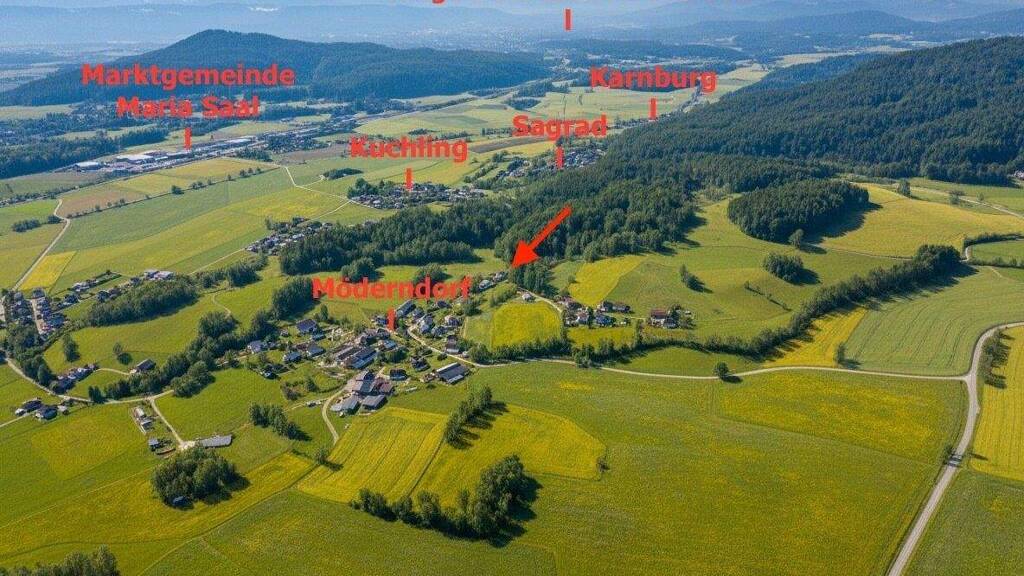 Die Liegenschaft befindet sich in einer besonders attraktiven Wohnlage im begehrten Zentralraum Kärntens. Die Ortschaft Möderndorf gehört zur Marktgemeinde Maria Saal im Bezirk Klagenfurt-Land und verbindet ein ruhiges, naturnahes Wohnumfeld mit einer sehr guten Erreichbarkeit der urbanen Zentren Klagenfurt am Wörthersee und St. Veit an der Glan. Damit bietet dieser Standort eine ideale Balance aus Privatsphäre, Lebensqualität und infrastruktureller Anbindung - ein wesentliches Kriterium für anspruchsvolle Käufer eines hochwertigen Einfamilienhauses.