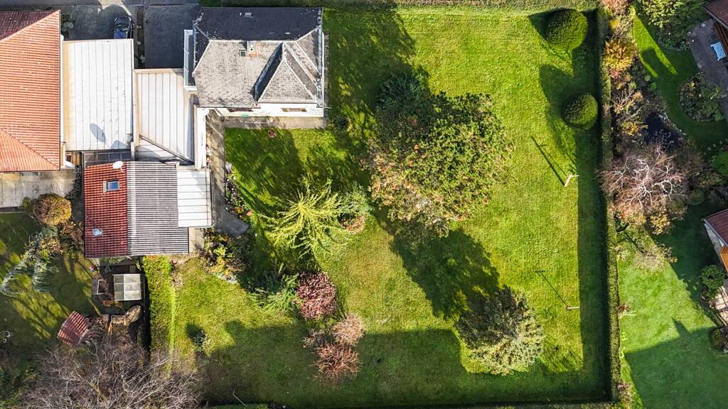 Auf dem Grundstück befindet sich ein Bestandshaus, das sich in einem dem Alter, jedoch gepflegten Zustand befindet. Das Grundstück ist mit einem hohen grünen Zaun eingefriedet und verfügt über einen schönen Altbaumbestand.