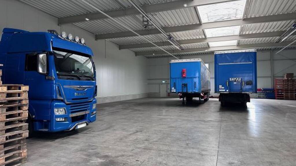 Die Halle mit Industrieboden hat eine Höhe von ca. 6,70 m und wurde in Sandwichpaneel-Bauweise mit einer Isolierung von 10 cm erstellt. An der Decke befindet sich ein elektrisch zu öffnendes Lichtband und Deckenleuchten. Das elektrische Sektionaltor ist ca. 4,50 m x 5 m. Stromanschlüsse sind ausreichend vorhanden. Das WC ist gemeinschaftlich zu nutzen.