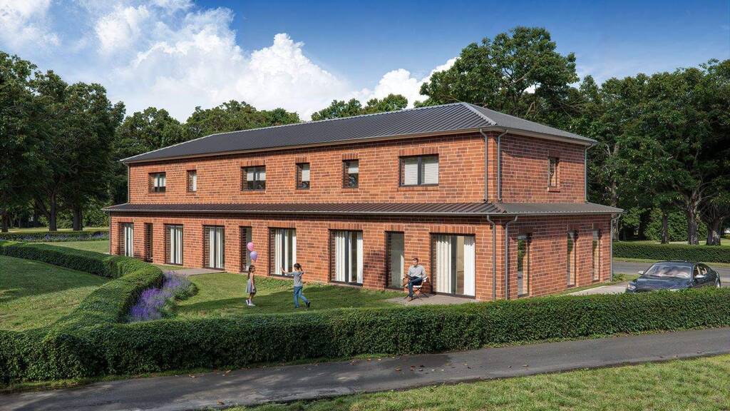 Mit seiner attraktiven Ecklage und der großzügigen Gartenfläche bietet es ein besonderes Wohngefühl mit viel Licht, Ruhe und Privatsphäre. Der Baubeginn ist für den 01.02.2026 vorgesehen, die Fertigstellung erfolgt bis zum 30.11.2026. Die hochwertige Klinkerfassade in Kombination mit anthrazitfarbenen Fenstern verleiht dem Gebäude eine elegante, zeitlose Optik. Großzügige Fensterflächen lassen viel Tageslicht herein und schaffen eine offene, freundliche Atmosphäre. Der Wohn- und Essbereich im Erdgeschoss lädt zum Wohlfühlen ein und öffnet sich durch große Fensterelemente zur Terrasse und zum Garten.