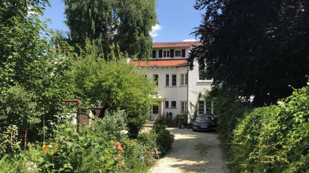Das Hinterhaus mit 3 Wohneinheiten präsentiert sich auf einem 550m² großen Grundstück und Blick auf altem Baumbestand.