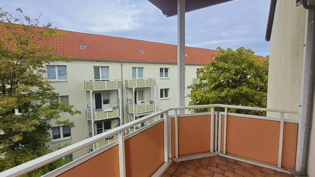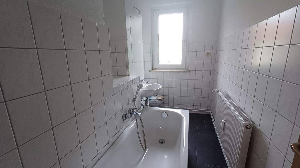- 3-Zimmerwohnung mit Balkon - Tageslichtbad mit Wanne, Waschbecken und WC - Küche mit Fenster, Fliesenspiegel - Wände Raufaser weiß - Fußboden - moderner CV-Belag - Mieterkeller