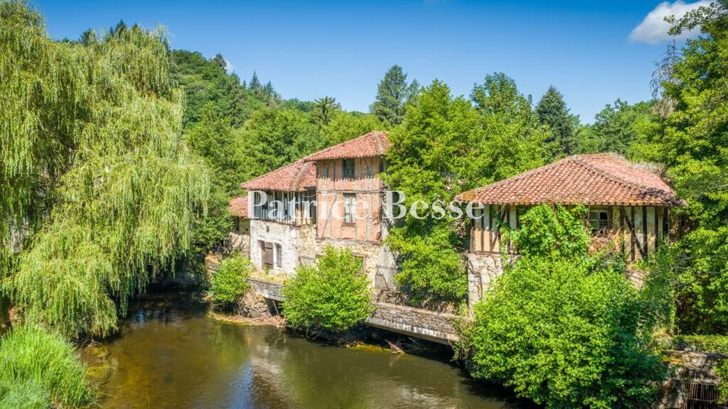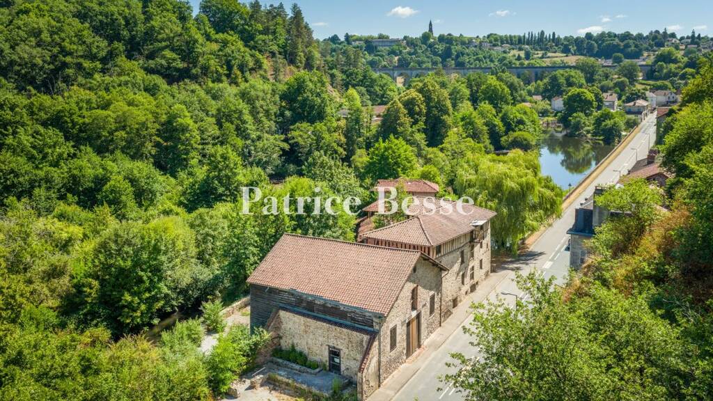 Five former flour mills for commercial use, with water rights, at the entrance to a medieval town 25 minutes from Limoges.