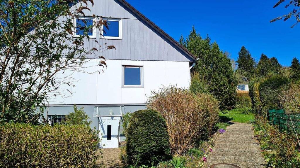 . Baujahr: 1973 . Wohnfläche gesamt: ca. 192?m² . Erdgeschoss + Dachgeschoss: ca. 147?m² . Einliegerwohnung: ca. 45?m², mit separatem Eingang . Nutzfläche: ca. 90?m² . Zimmer insgesamt: 7 . Schlafzimmer: 5 . Badezimmer: 3 + Gäste-WC . Hochwertiger Bodenbelag: Laminat und Fliesen . Badezimmer im EG und DG saniert: 2017 . Elektroanlage erneuert: 2007 . Öl-Brennwertheizung modernisiert: 2007 . Zwei Garagen . Sonnige Terrasse mit viel Platz zur Erholung . Großes Eigentumsgrundstück: ca. 915?m²