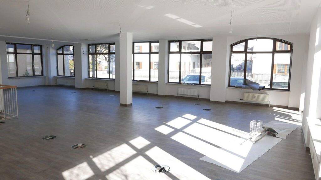 Aktuell hat die FlÀche im EG keine ZwischenwÀnde und kann deshalb flexibel (auch mit TrennwÀnden) aufgeteilt werden. Es gibt zwei getrennte WCs. Eine Klimaanlage ist vorhanden. Die RÀume haben eine ideale Raumakustik.