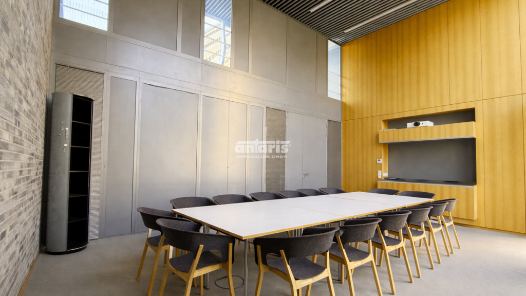 Für Besprechungen, Präsentationen oder Workshops steht den Mietern ein ca. 36 m² großer Beratungs- und Konferenzraum im 1. OG zur Verfügung, der flexibel tageweise genutzt werden kann. Darüber hinaus bietet das Objekt weitere praktische Ergänzungen: . Lagerräume / Lagerboxen im Untergeschoss (ca. 10 m²) . Tiefgaragenstellplätze . Besucherparkplätze für Gäste und Kunden