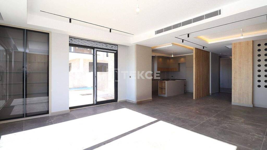 Die Doppelhaushälfte im Stadtteil Dösemealti in Antalya verfügt über hochwertige Ausstattungsmerkmale wie Fußbodenheizung, offenen Parkplatz, privaten Pool, Einbauküche und Sauna.