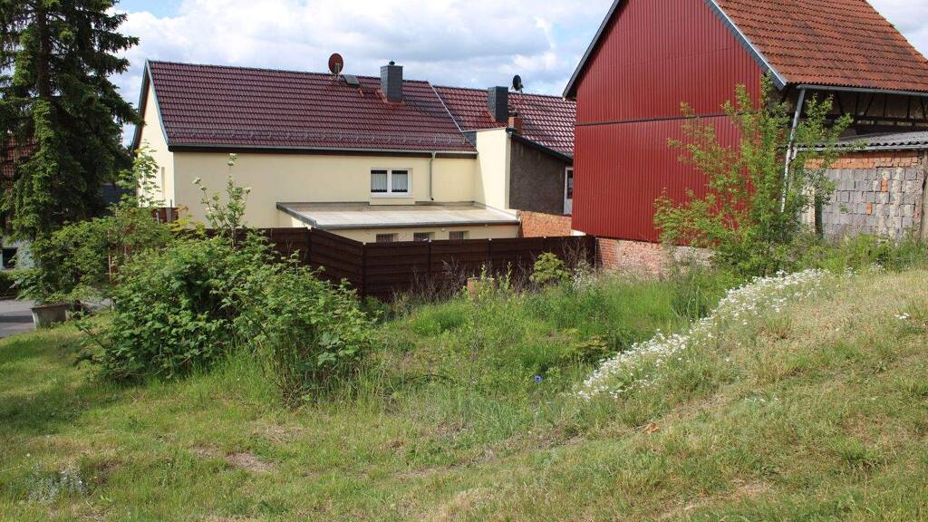 Mitten im Ort befindet sich dieses zum Verkauf stehende Grundstück. Eine Bebaubarkeit wurde bereits geprüft, eine frühere Baugenehmigung wurde positiv bestätigt. Das Grundstück war vor 2018 noch in vollem Umfang mit einer Scheune (bestehend aus 3 Etagen) bebaut, wodurch die Eigentümer davon ausgehen, dass eine Grenzbebauung auch möglich sein dürfte. Erschließungsträger wie Gas, Strom, Wasser und Abwasser, sowie Internet liegen in der Straße an. Das zum Verkauf stehende Grundstück hat folgende Maße: 14,70 m Länge und 12,75 m Breite.