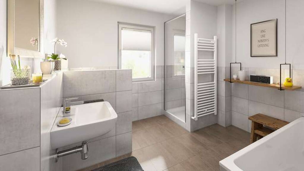 Baugrundstück Effizienzhaus 55 im Standard, Effizienzhaus 40 gegen Aufpreis Bodengrundgutachten, Gründungspolster und Bodenplatte Bauantrag Bauleitung durch erfahrene Bauleiter Massives Mauerwerk aus Porenbetonsteinen Innen- und Außenputz Dachziegel, Farbe wählbar Estrich inkl. Schall- und hochwertiger Wärmedämmung Energieeffiziente Wärmepumpe mit Warmwasserspeicher Fußbodenheizung mit Einzelraumregelung Vorrüstung Photovoltaik Vorrüstung E-Auto Bad gefliest inkl. Sanitäreinrichtung von Markenherstellern 3-fachverglaste Fenster inkl. Rollläden Haustür mit Lichtausschnitt und Edelstahlgriffen Elektroanlage komplett installiert mit Verteilerschrank und Zubehör Innentüren in vielen modernen Dekoren und Beschlägen Massive Echtholztreppe mit Handlauf (nicht bei Bungalows) Kontrolle durch unabhängigen Baugutachter und vieles mehr...