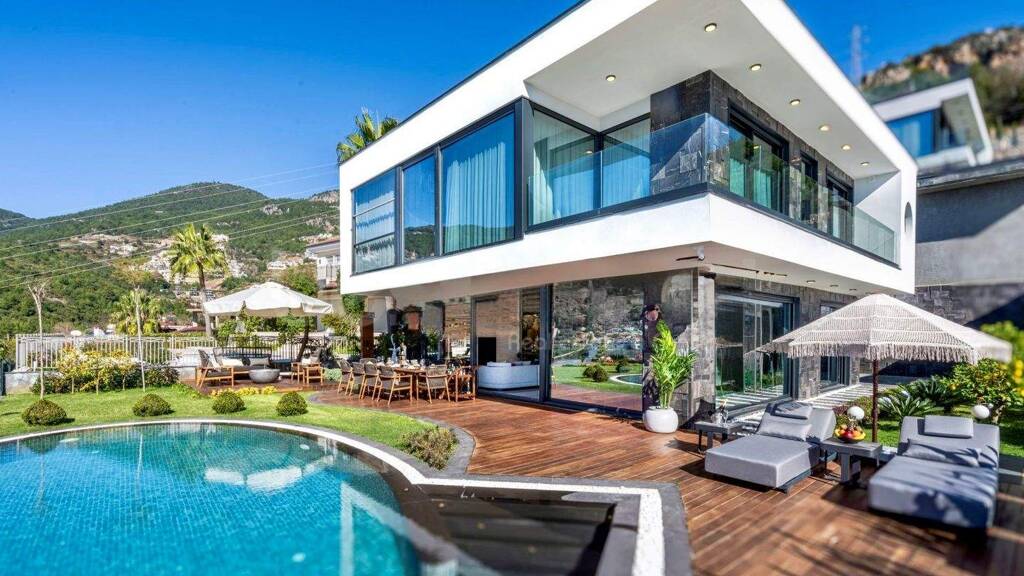 Auf einem wunderschönen Berggipfel gelegen, bietet diese Villa einen herrlichen Blick auf das Taurusgebirge und das Mittelmeer und ein Leben in ultimativem Luxus. Auf einem ca. 580 qm großen Grundstück im Jahr 2024 erbaut verfügt sie über eine Innenfläche von etwa 300 qm, die in einen geräumigen, lichtdurchfluteten Wohnbereich sowie drei Schlafzimmer -jeweils mit einem eigenen Bad und einem begehbaren Kleiderschrank- aufgeteilt ist. Das Hauptschlafzimmer bietet dabei einen unverbauten Blick auf das Meer und die Burg.