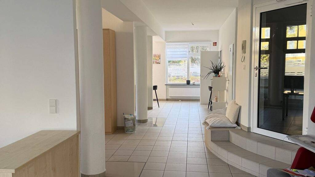 Es handelt sich um eine großzügige, nicht unterteilte Gewerbefläche, die vielfältige Nutzungsmöglichkeiten bietet. Eine separate Toilette sowie eine kleine Teeküche sind vorhanden. Die Fläche wird ohne Küche vermietet.