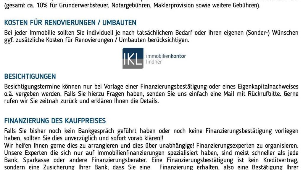 Bitte lesen Sie das Exposé vollständig durch, bevor Sie anfragen! Anfragen werden nur beantwortet bei Angabe der vollständigen Adresse UND Telefonnummer. Bitte stellen Sie zuerst eine Anfrage per Mail/über das Portal oder unsere Website, bevor Sie anrufen.