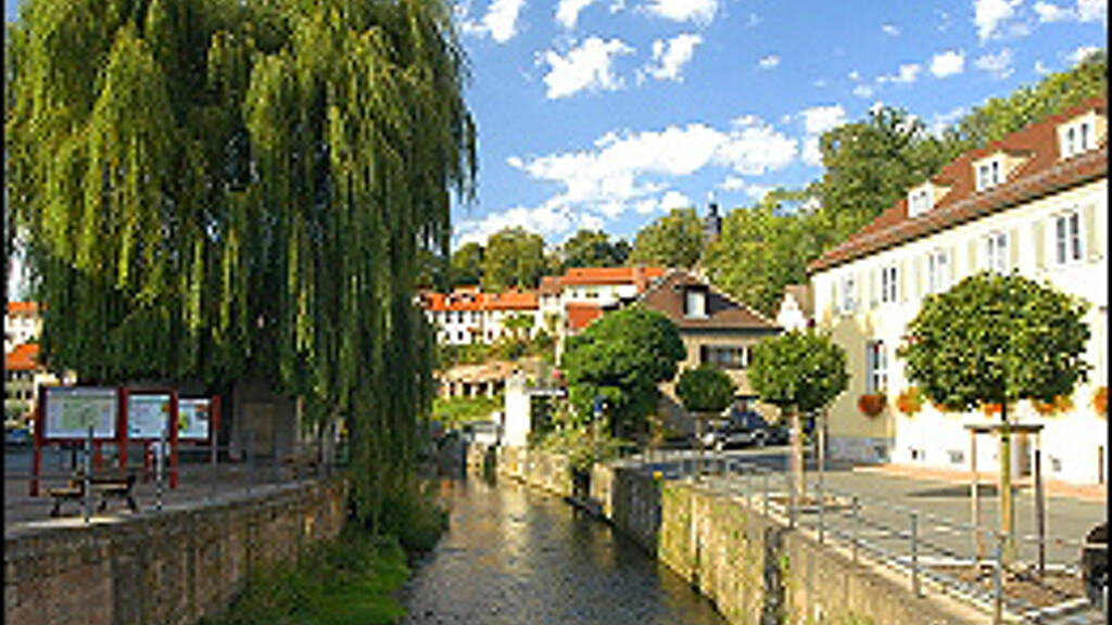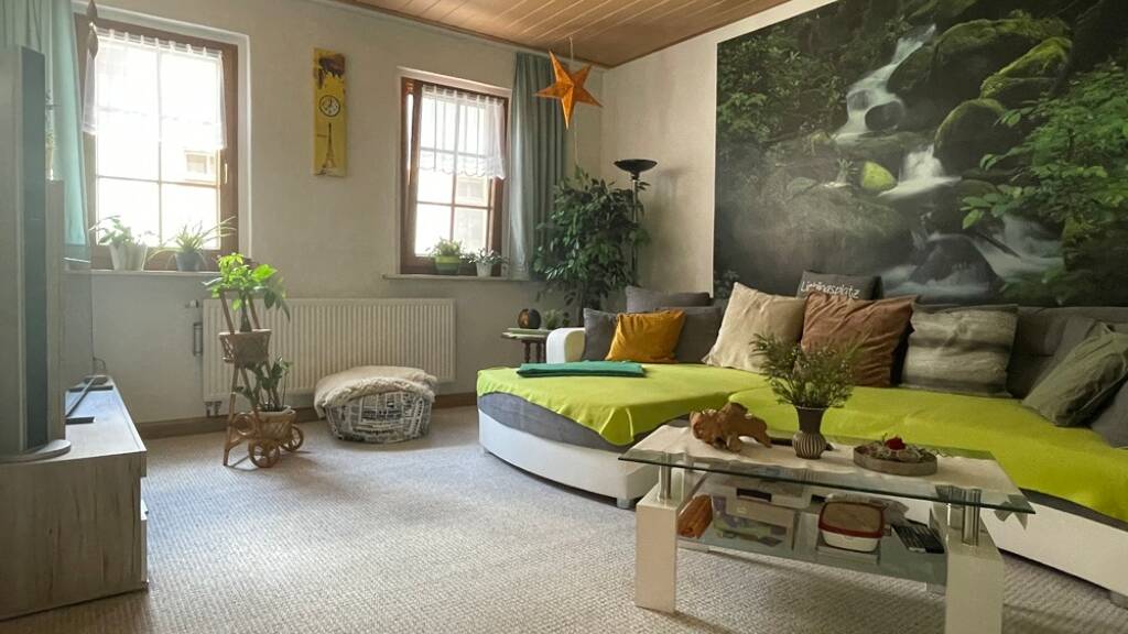 Das geräumige Einfamilienhaus befindet sich mitten im Stadtzentrum an der Roda.