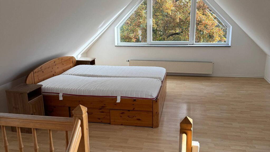 Im Dachgeschoss befindet sich ein großes Schlafzimmer mit Doppelbett.