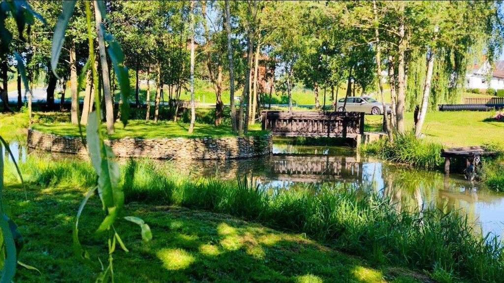 Das Highlight dieser Immobilie ist zweifellos das außergewöhnliche Grundstück: Der Eigentümer hat das ehemals verwilderte Areal in liebevoller Eigenarbeit in ein parkähnliches Paradies verwandelt. Ein Bachlauf umfließt eine kleine „Insel“ in der Grundstücksmitte – sogar mit Fischbestand. Eine grüne Oase mit viel Charme und Rückzugsqualität.