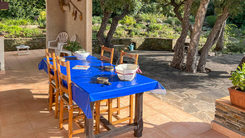 Ideally located in a residential and sought-after area of Cavalaire, this air-conditioned villa is 220 m2 on an enclosed and landscaped plot of and 157 m2 with several terraces, with its enchanting country garden with a Jacuzzi.