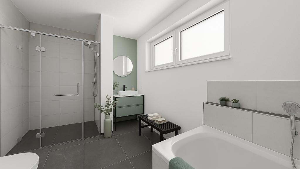 Badezimmer: Badewanne, Bad mit Dusche