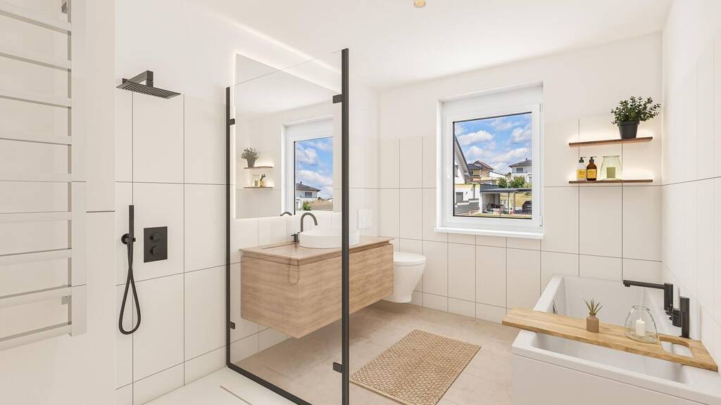 - Badezimmer: Badewanne, Bad mit Dusche, Bad mit Fenster